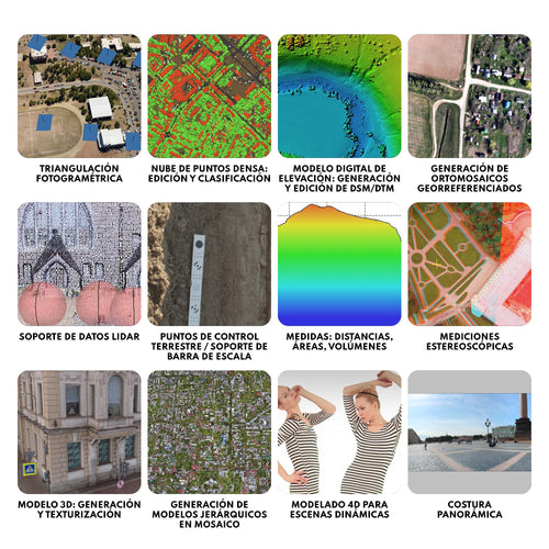 DESCRIPCIÓN Agisoft Metashape es un avanzado software de fotogrametría y reconstrucción 3D que permite transformar imágenes en modelos tridimensionales de alta precisión. Diseñado para profesionales de diversas industrias, Metashape es ideal para aplicaciones en campos como la geomensura, topografía, arquitectura , arqueología , cartografía , ingeniería , cine y multimedia , y conservación del patrimonio . Gracias a su capacidad de generar ortomosaicos detallados, nubes de puntos densas, modelos texturizados, y mapas geoespaciales, Agisoft Metashape se ha convertido en la herramienta preferida para proyectos que requieren precisión y calidad. CARACTERÍSTICAS AGISOFT METASHAPE Con Agisoft Metashape , podrás procesar fotos aéreas capturadas por drones, así como imágenes terrestres, para crear mapas geoespaciales, modelos digitales de elevación (DEM), modelos de terreno, y análisis geoespaciales avanzados. Su capacidad de procesamiento por lotes y su interfaz intuitiva permiten una fácil integración en cualquier entorno de trabajo, mejorando significativamente la productividad. Además, Agisoft Metashape ofrece opciones avanzadas de edición y herramientas de control de calidad que garantizan resultados altamente precisos y personalizados. Con soporte para scripts de Python y automatización de procesos, es la solución ideal para cualquier profesional que necesite llevar sus proyectos de modelado 3D al siguiente nivel. Características principales: Reconstrucción 3D a partir de imágenes para modelos digitales de alta calidad. Procesamiento automatizado y eficiente para grandes volúmenes de datos. Herramientas avanzadas de edición y control de calidad. Compatible con múltiples formatos de entrada y salida. Soporte para integración de scripts de Python y automatización de tareas. Optimiza tu flujo de trabajo con Agisoft Metashape y lleva tus proyectos de fotogrametría y reconstrucción 3D a nuevas alturas. ÁREAS DE APLICACIÓN AGISOFT METASHAPE Arquitectura y Construcción: Creación de modelos detallados de edificios, planificación de construcciones y documentación de proyectos arquitectónicos. Arqueología y Conservación del Patrimonio: Reconstrucción de sitios arqueológicos y conservación digital de monumentos históricos y artefactos. Cartografía y Geomática: Generación de mapas topográficos, ortomosaicos y modelos digitales de terreno (DTM) a partir de datos fotogramétricos. Ingeniería y Minería: Análisis geoespaciales para planificación de infraestructuras, estudios de terreno y gestión de recursos naturales. Cine, Animación y Videojuegos: Creación de entornos virtuales realistas, animaciones 3D y efectos especiales. Medio Ambiente y Agricultura: Monitoreo de cultivos, gestión de recursos hídricos y análisis de impacto ambiental mediante imágenes aéreas. VIDEOS DESCARGAS Descargar Datasheet
