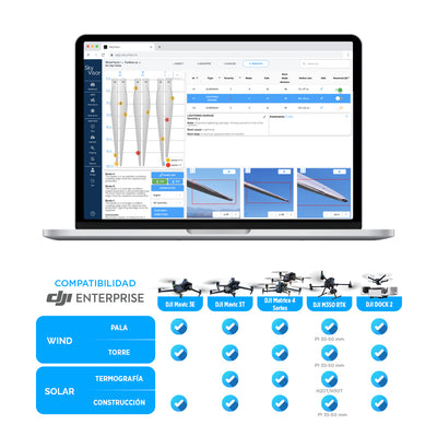 DESCRIPCIÓN SkyVisor Wind es una suite de software de vanguardia diseñada para automatizar y simplificar las inspecciones de aspas de aerogeneradores. En solo 18 minutos por turbina, esta herramienta todo en uno permite inspecciones rápidas y eficientes que apoyan las necesidades de mantenimiento diario, minimizando el tiempo de inactividad y reduciendo los costos operativos. Con tecnología de gemelo digital para una gestión mejorada de activos, SkyVisor ofrece vuelos de drones 100% autónomos, capturando datos de alta calidad mediante adquisición basada en drones y ayudándote a encontrar defectos rápidamente usando las potentes herramientas de IA de nuestra plataforma. ¡Toma el control del proceso de inspección hoy y optimiza la toma de decisiones con SkyVisor Wind para una gestión de activos proactiva y rentable! Áreas de Aplicación SkyVisor Wind sirve tanto a parques eólicos terrestres como marinos, adaptándose a turbinas de cualquier diámetro y fabricante. Ya sea inspeccionando aspas o torres de turbinas, nuestra solución proporciona inspecciones rápidas, precisas y automatizadas, permitiéndote gestionar el mantenimiento de manera proactiva y eficiente. Tu Suite de Software Todo en Uno SkyVisor proporciona una suite de software integrada diseñada para la recolección automática y eficiente de datos, resolución colaborativa de problemas y gestión integral de activos. La App de Dron, App de Campo y Plataforma Web trabajan en perfecta armonía para optimizar tus inspecciones de aerogeneradores y el rendimiento de los activos: App de Dron SkyVisor: Captura datos visuales de alta resolución con vuelos autónomos de drones, permitiendo una inspección rápida y precisa, incluso en condiciones desafiantes. Plataforma Web SkyVisor: Planifica inspecciones, rastrea actividades de mantenimiento y genera informes desde una plataforma centralizada impulsada por herramientas de detección de defectos basadas en IA. App de Campo SkyVisor: Empodera a tus equipos con acceso instantáneo a datos, hilos de compartición de archivos e imágenes, asegurando una respuesta rápida y colaboración eficiente para resolver problemas en el sitio. CARACTERÍSTICAS SkyVisor Wind Solución In-House: solución de inspección interna que devuelve el control a tu equipo Vuelo eficiente de 18 minutos por turbina: inspección rápida y optimizada Operación Totalmente Autónoma: inspección automática que garantiza un tiempo mínimo de inactividad y máxima seguridad Datos de Alta Resolución: adquisición de 120 imágenes de alta calidad por aspa, proporcionando datos visuales completos para una detección y análisis preciso de defectos Cumplimiento con Estándares de la Industria: inspección industrial bajo el estándar IEC adaptable a diversos modelos y especificaciones de turbinas Impulsado por IA: herramientas avanzadas de detección de defectos basadas en Inteligencia Artificial. Un asistente digital experto en aspas, que permitirá detectar defectos de manera más rápida y eficiente Informes Optimizados: Genera sin esfuerzo informes digitales detallados y compartibles para una comunicación fluida con las partes interesadas VIDEOS DESCARGAS Descargar Datasheet